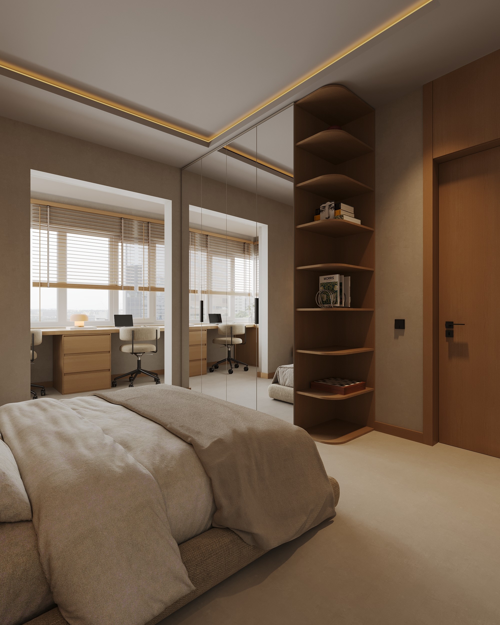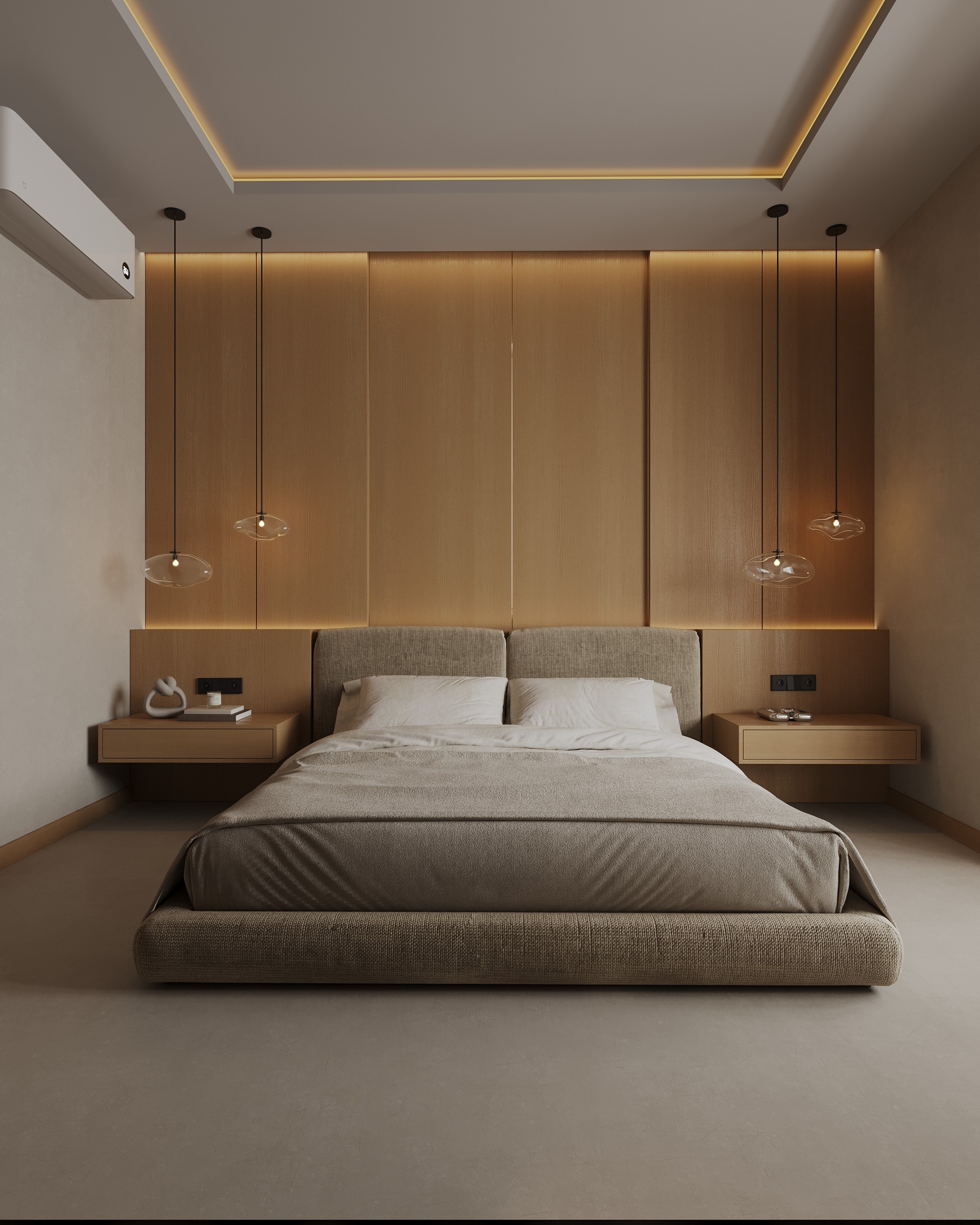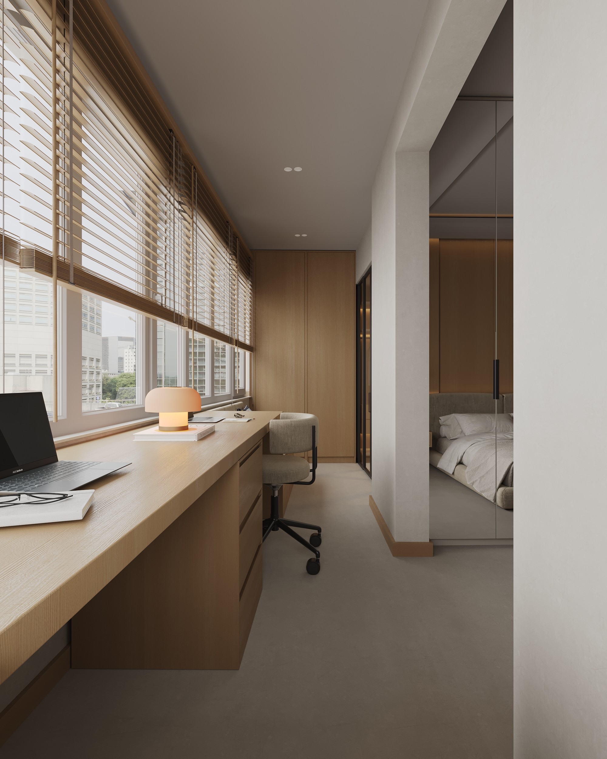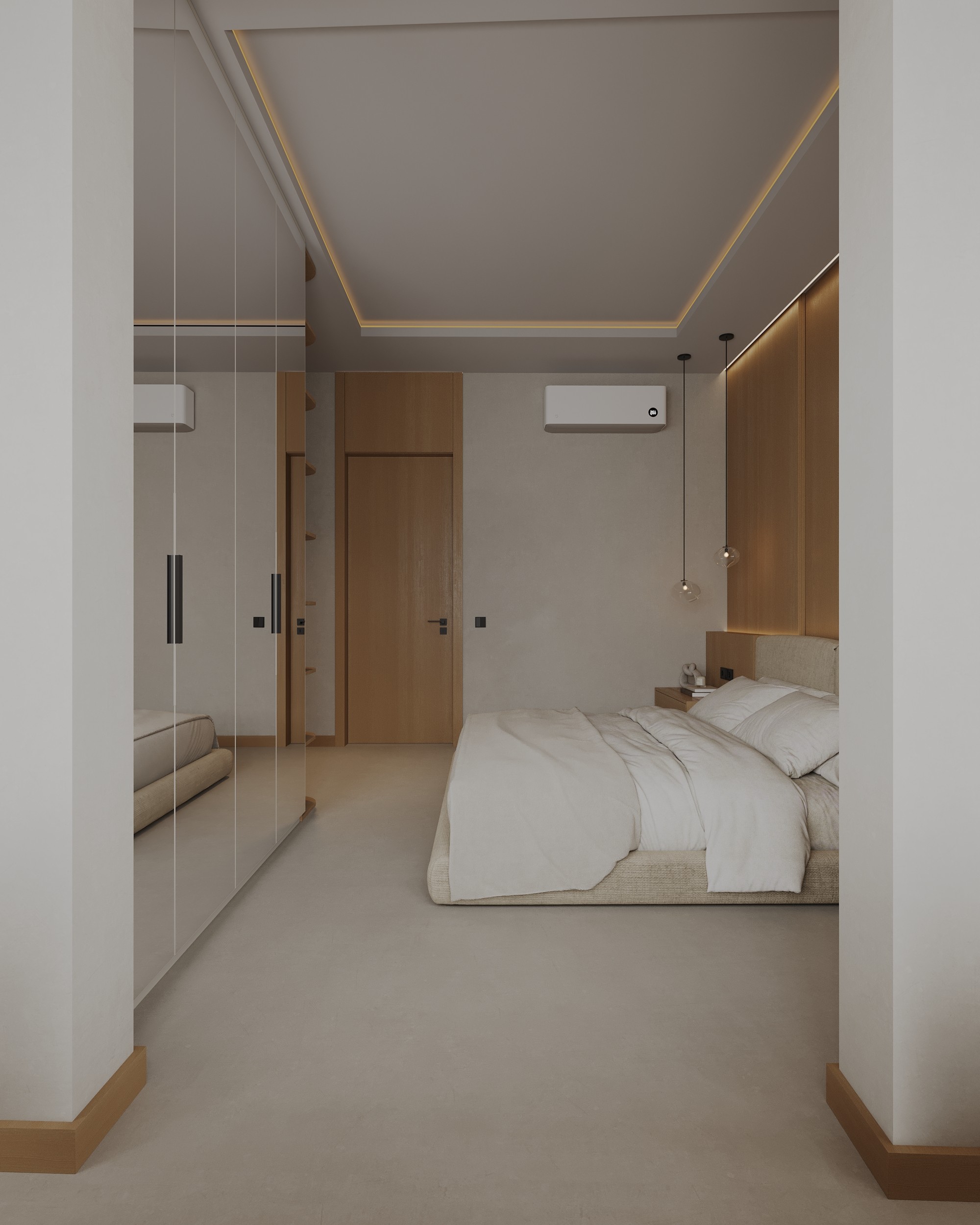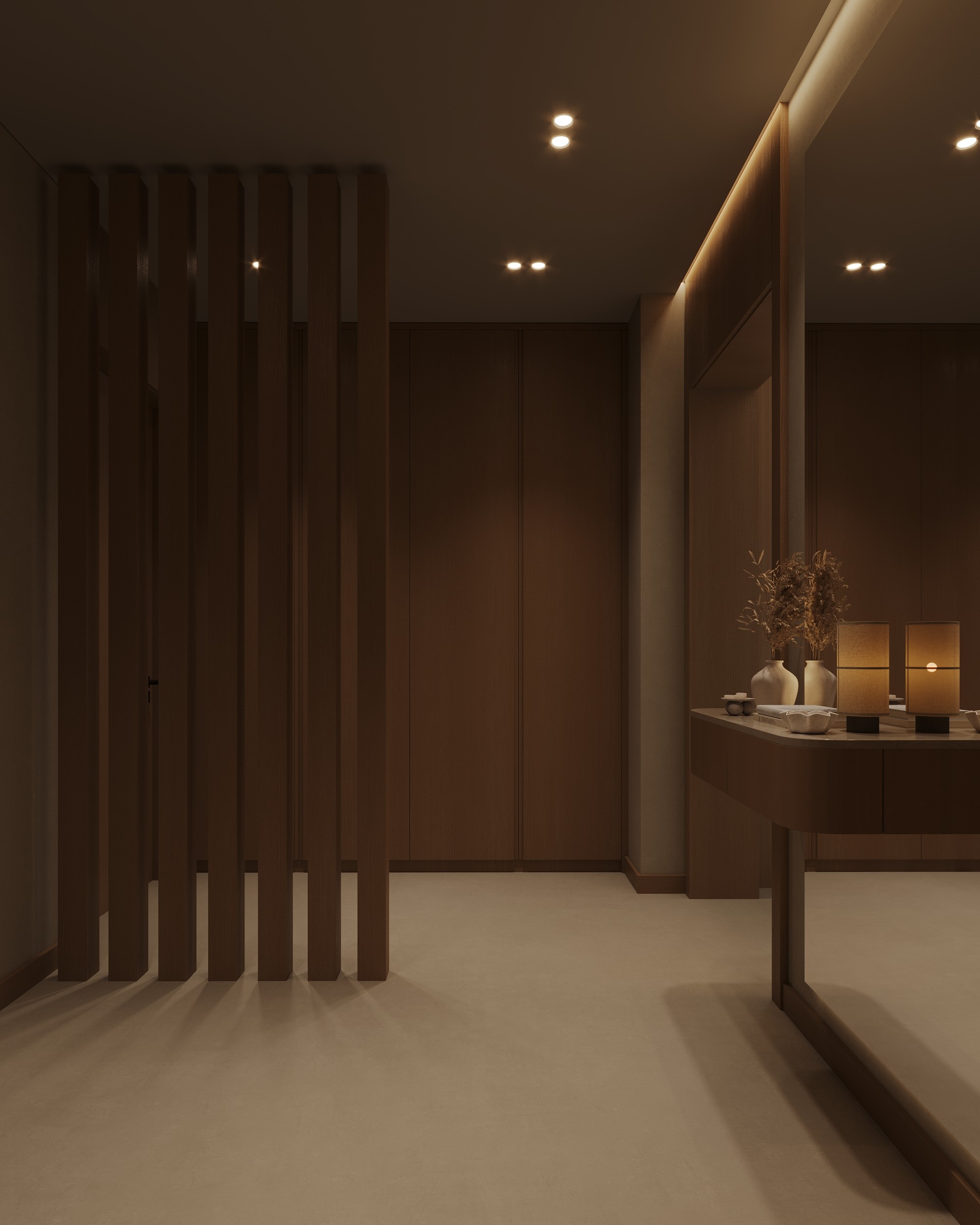 The existing layout did not use space efficiently. Circulation areas and private rooms lacked functional order, and the material transitions felt inconsistent. Without modifying the structural constraints of the apartment, the design needed to improve usability and establish a unified interior identity.